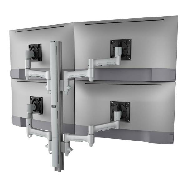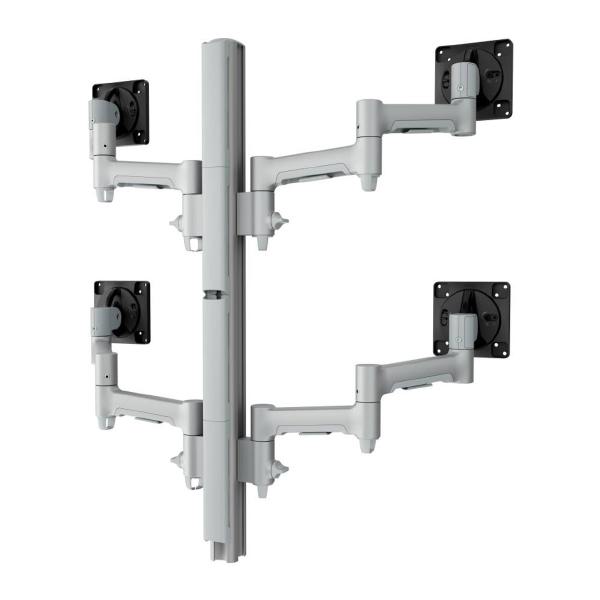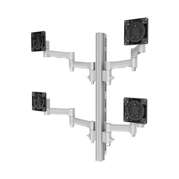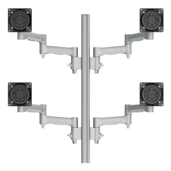 Atdec AWMS-4-4675 Quad 460mm Monitor Arms on 750mm Post. 12kg Flat Screens, 10kg Curved Screens, Grommet Clamp Desk Fixing, Silver
