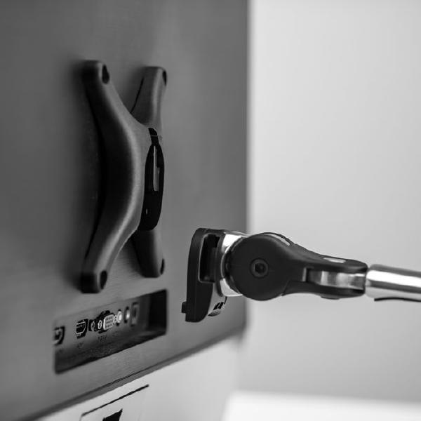 The AFS-AT-DC is designed to support two displays up to 8kg. This desk mount is featuring a 525mm pole with two articulated display arms. The arms can be independently set to the desired height to ensure perfect display alignment be it identical or different size monitors. Easy glare control and focal distance adjustments are possible thanks to three points of articulation on each arm, tilt and pan functions. The rotating function at the VESA head allows applications in either landscape or portrait orientation. The displays can be set in a back-to-back or side-by-side configuration (up to 27″ monitors in a side-by-side landscape orientation).