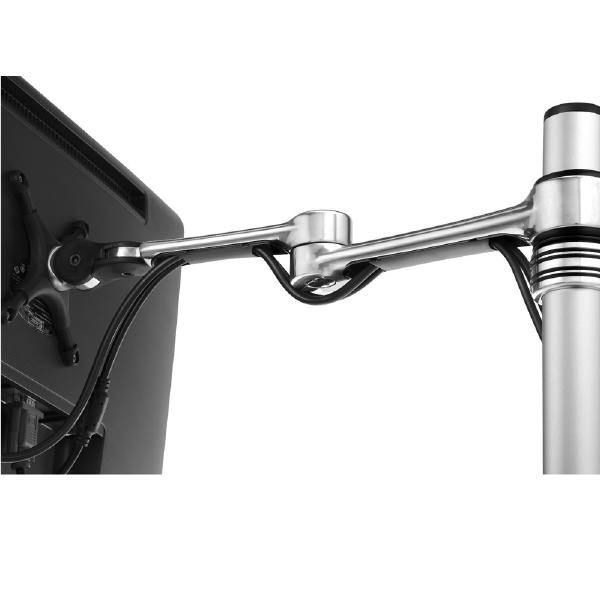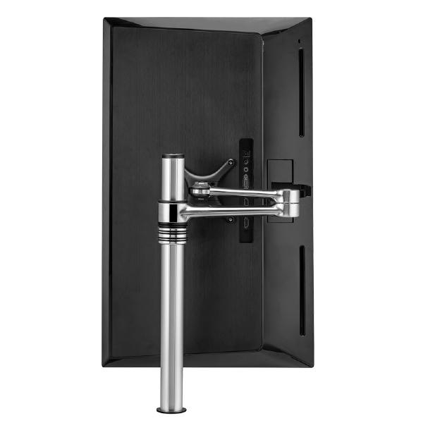 Atdec Single Monitor Swing Arm on Post. Up to 32″ screens, Max load: 8kg (flat), 5.5kg (curved), Bolt-Through and F-Clamp, VESA up to 100×100. Silver.