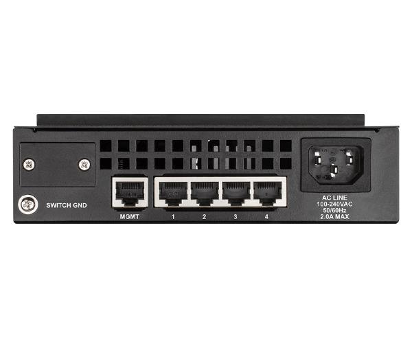 Combo Ports (RJ-45 + SFP): 4 BASE-T PoE and 1 x BASE-T MGMT Port