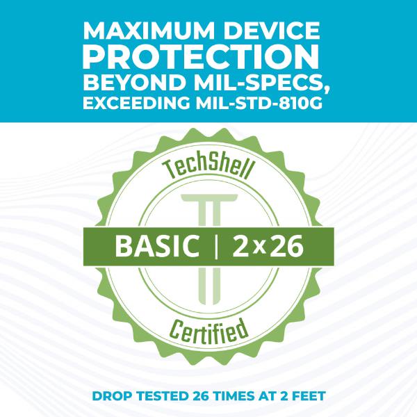 Best-in-class drop protection against falls up to two (2) feet making the case TechShell Basic Certified, offering additional protection beyond basic mil-specs
