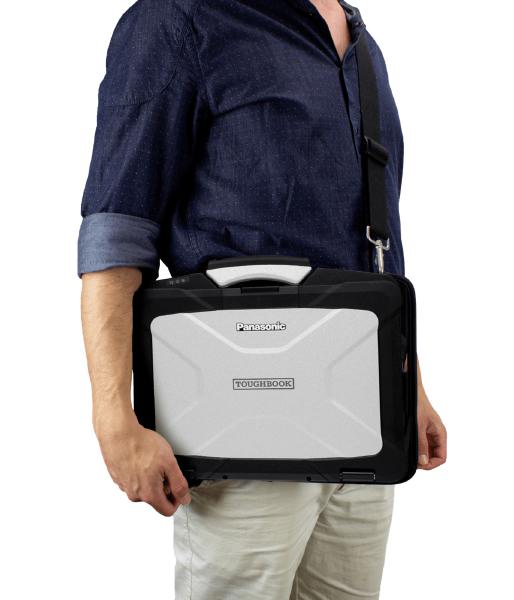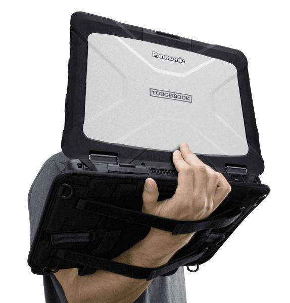 Forearm straps designed for use with either hand and both portrait and landscape orientation provide ergonomics, comfort and security while using AND carrying the TOUGHBOOK 40.