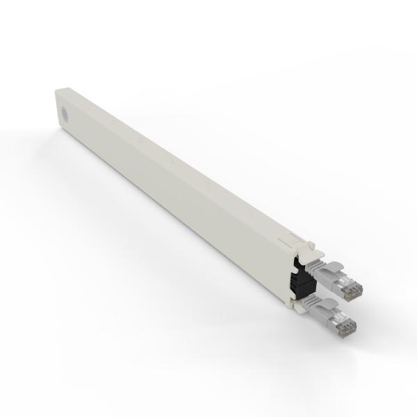 Build your own patchbox.one by filling your Frame with up to 24 Cable Cassettes. Have it your way and choose from various cable types, colours, connector types and cable lengths. With its modular system, you can exchange cassettes within seconds and easily adapt the rack as you need it. The Cat.6a cables inside the Cassette meet the ISO standards, and you can power devices with PoE (STP) and PoE++ (UTP), or choose the most flexible and bend-insensitive Fiber Optic Cables available, made from Corning ClearCurve Fiber.