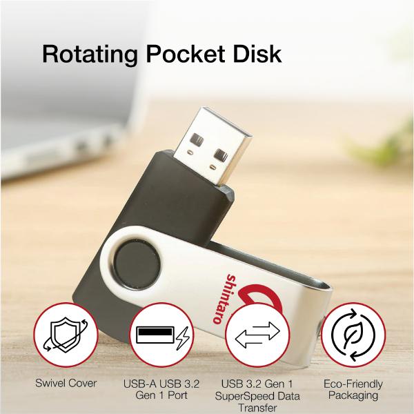 Shintaro 16GB Rotating USB 3.2 Pocket Disk – Fast Transfer & USB 2.0 Compatible