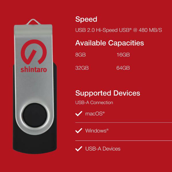 Shintaro 64GB Rotating Pocket Disk – USB 2.0, High-Speed, Slim Design