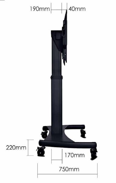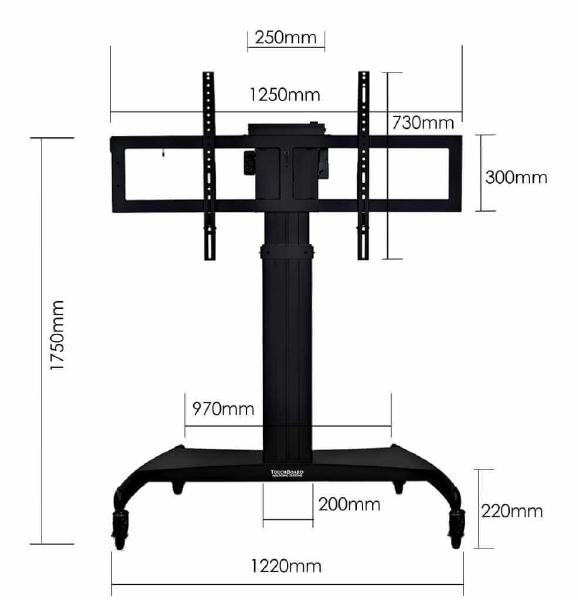 TouchBoard Mobile Height Adjustable Motorised Centre Lift System. VESA to 1200 x 600mm. Supports panels up to 136kg. Black.