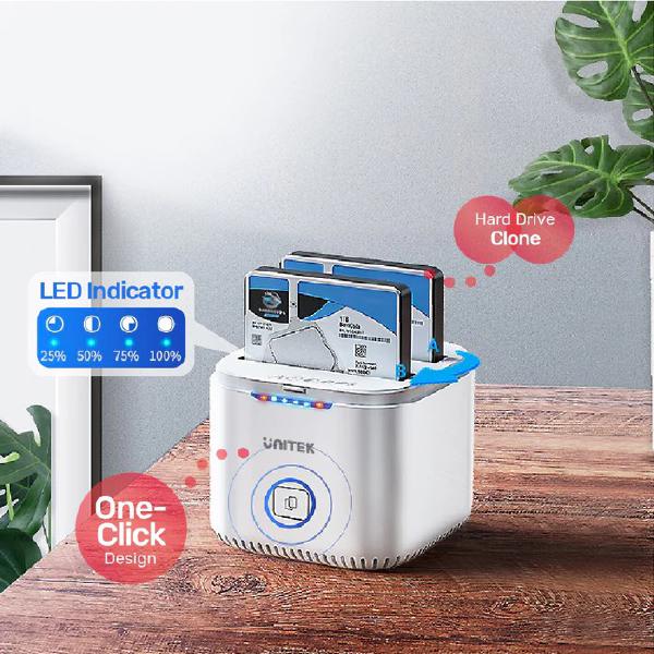 Unitek USB-C to 2.5″ Dual SATA 6G Hard Disk Docking Station with Offline Clone, AU 5V2A Power Adapter, White